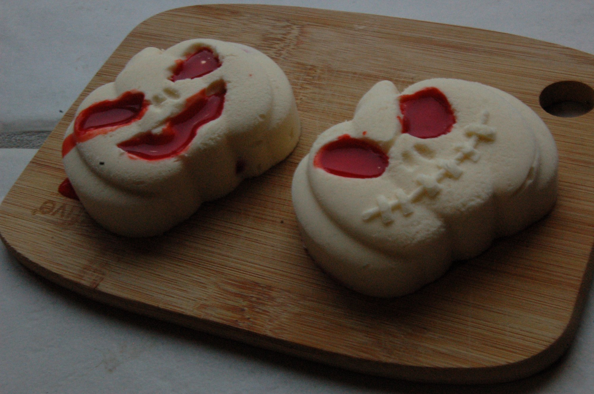 Succombez à mes entremets d'Halloween, un biscuit moelleux au chocolat, une purée de framboise fondante, une crème vanille onctueuse et une touche de glaçage rouge. Part individuelle. Les dessert sont a récupéré à Saint Cyr/Menthon